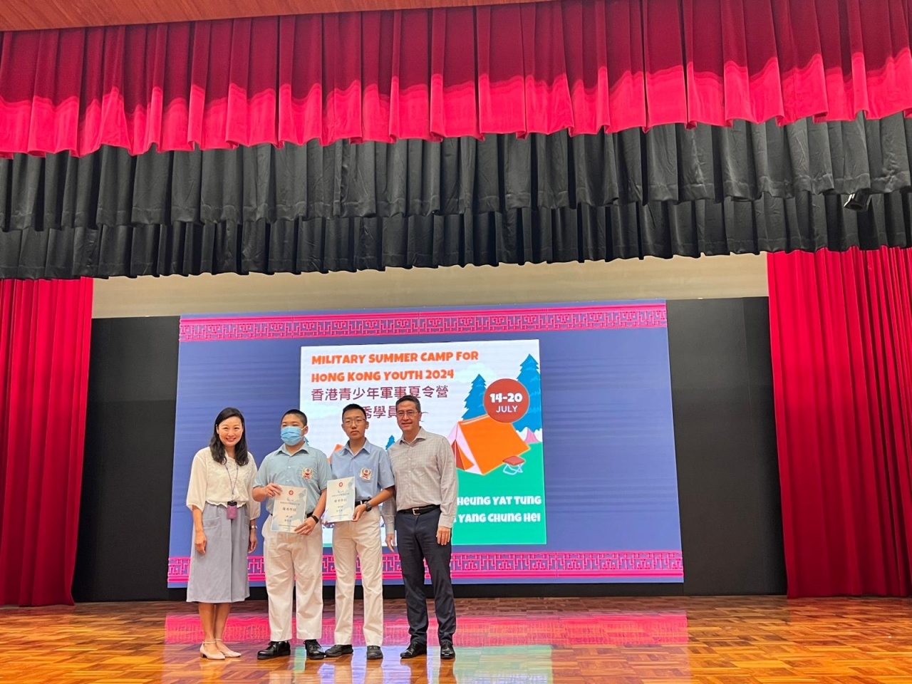 The Military Summer Camp for Hong Kong Youth organized by the Education Bureau in July aimed to develop morality and leadership potential among students and to foster their endurance, self-discipline, compliance, and spirit of unity. Our students 2M Cheung Yat Tung and 2A Yang Chung Hei passed the interview and were selected to join the Military Summer Camp. They performed well and were awarded “The Outstanding Students” of the Summer Camp.