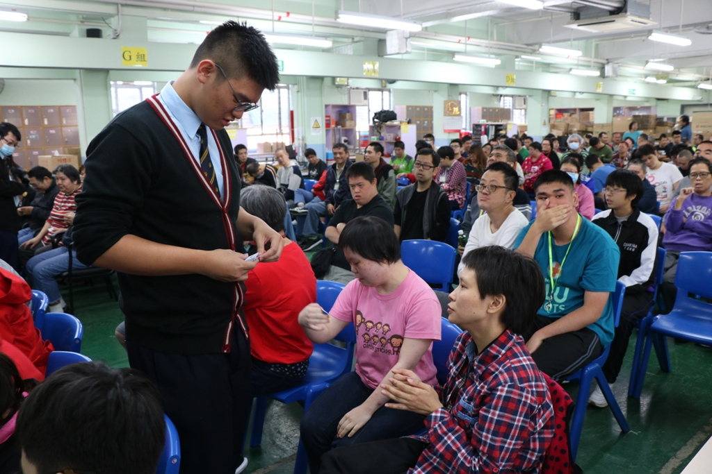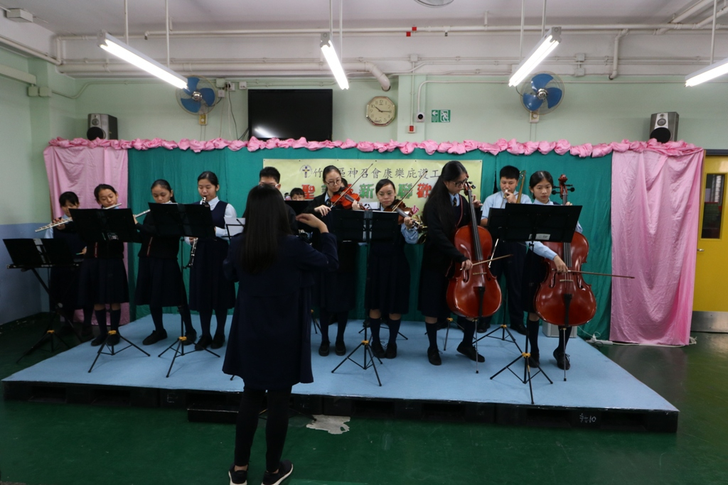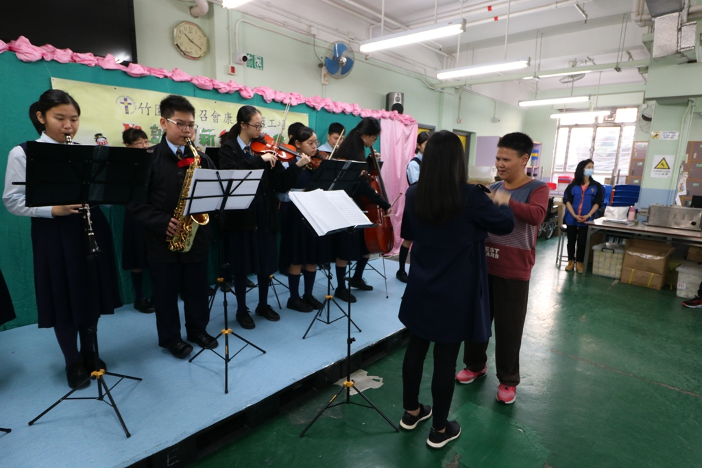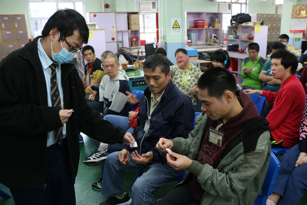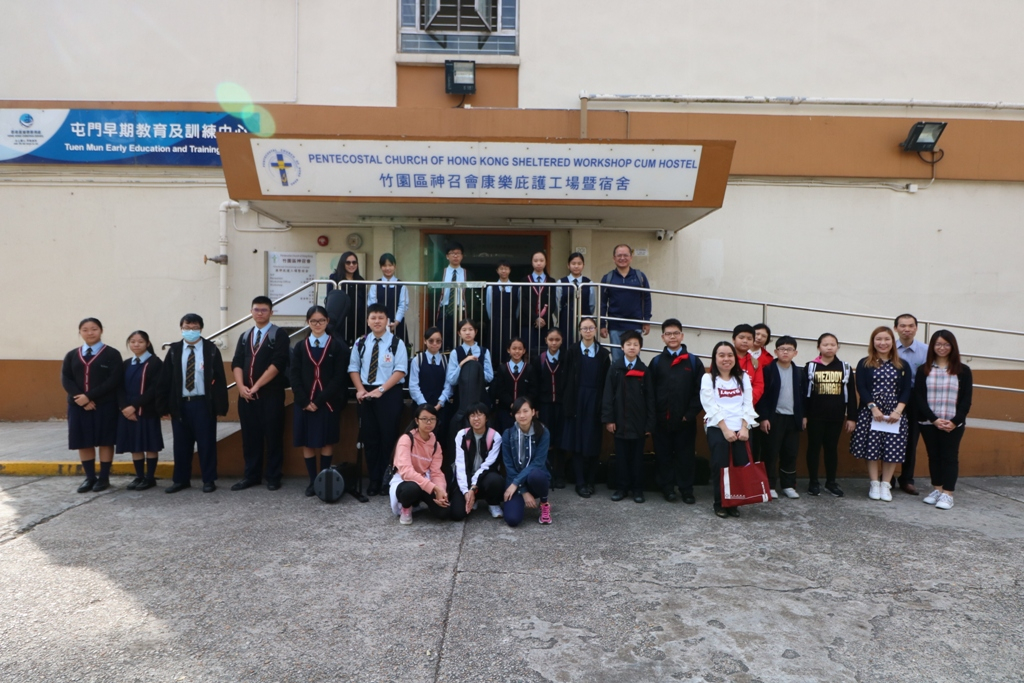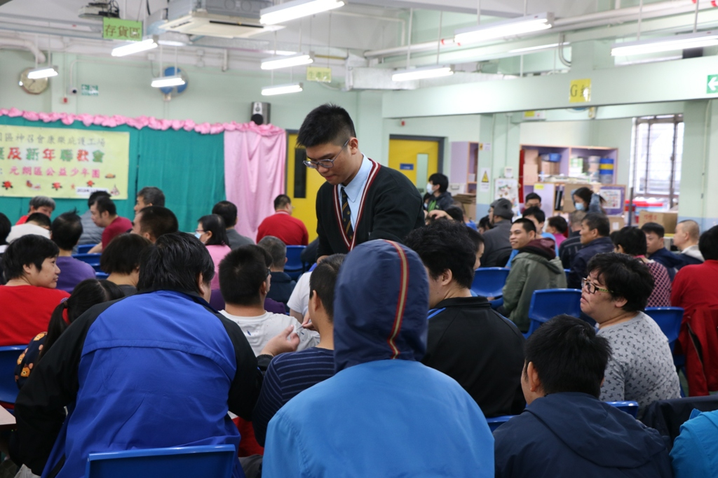 This activity was organized by the Yuen Long Committee of the Community Youth Club and was hosted by our school on 21 December 2018. Other secondary and primary schools in Yuen Long participated in this event and visited the sheltered workshop and hostel together. Our School Orchestra performed three Christmas songs. The Community Youth Club of our school helped prepare the games. One of our students acted as the Santa Claus and distributed Christmas gifts to the workers and shared the happiness. All participants had a great time and they knew more about how to show their care for the mentally challenged.