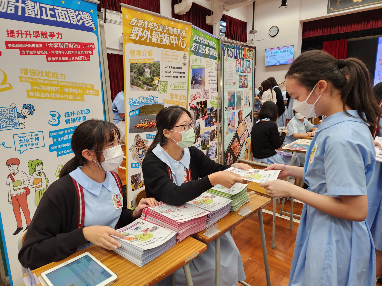 The Club Enrolment Day organized by the Co-curricular Activity Committee was held on 30th September. Committee members from 32 clubs set up their booths in the school hall to recruit new members. Some clubs even designed games and gave out small gifts to attract new members. Through the activity, committee members could practise and improve their communication, presentation and problem-solving skills. It was also an extraordinary platform for students to exchange their ideas with students from other forms. Students had a rewarding afternoon.