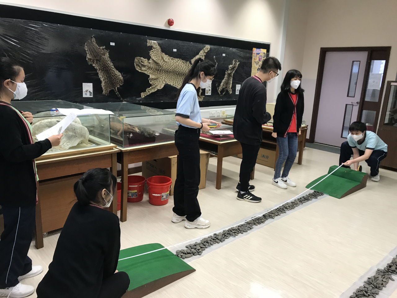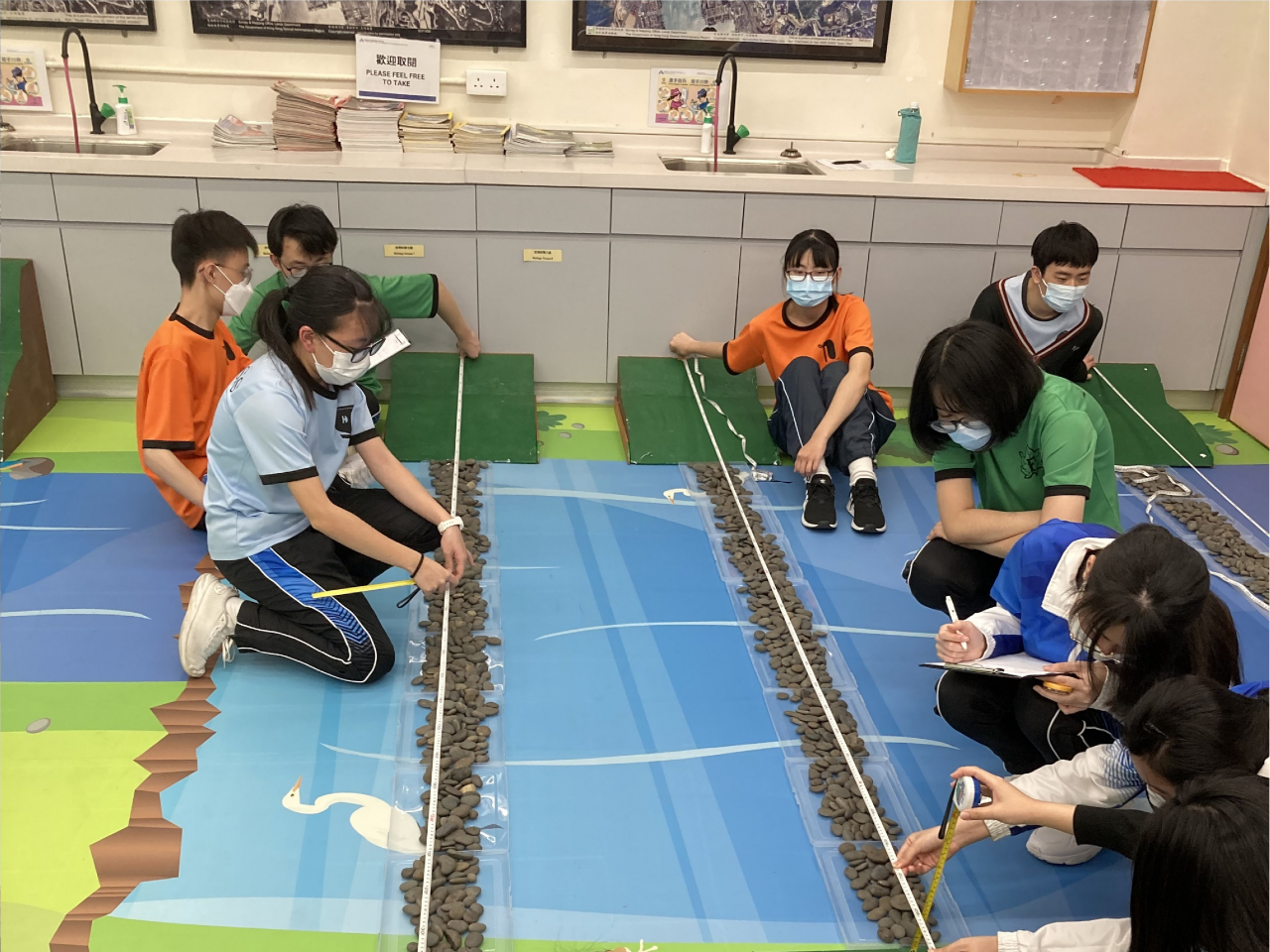 F.4 and F.5 Geography students had a field study in Ho Koon Nature Education cum Astronomical Centre. They learnt about the river environments in this field trip. By using different equipment and tools, students collected primary data along the simulated river channel in order to compare the river characteristics of the upper, middle and lower courses of the river.