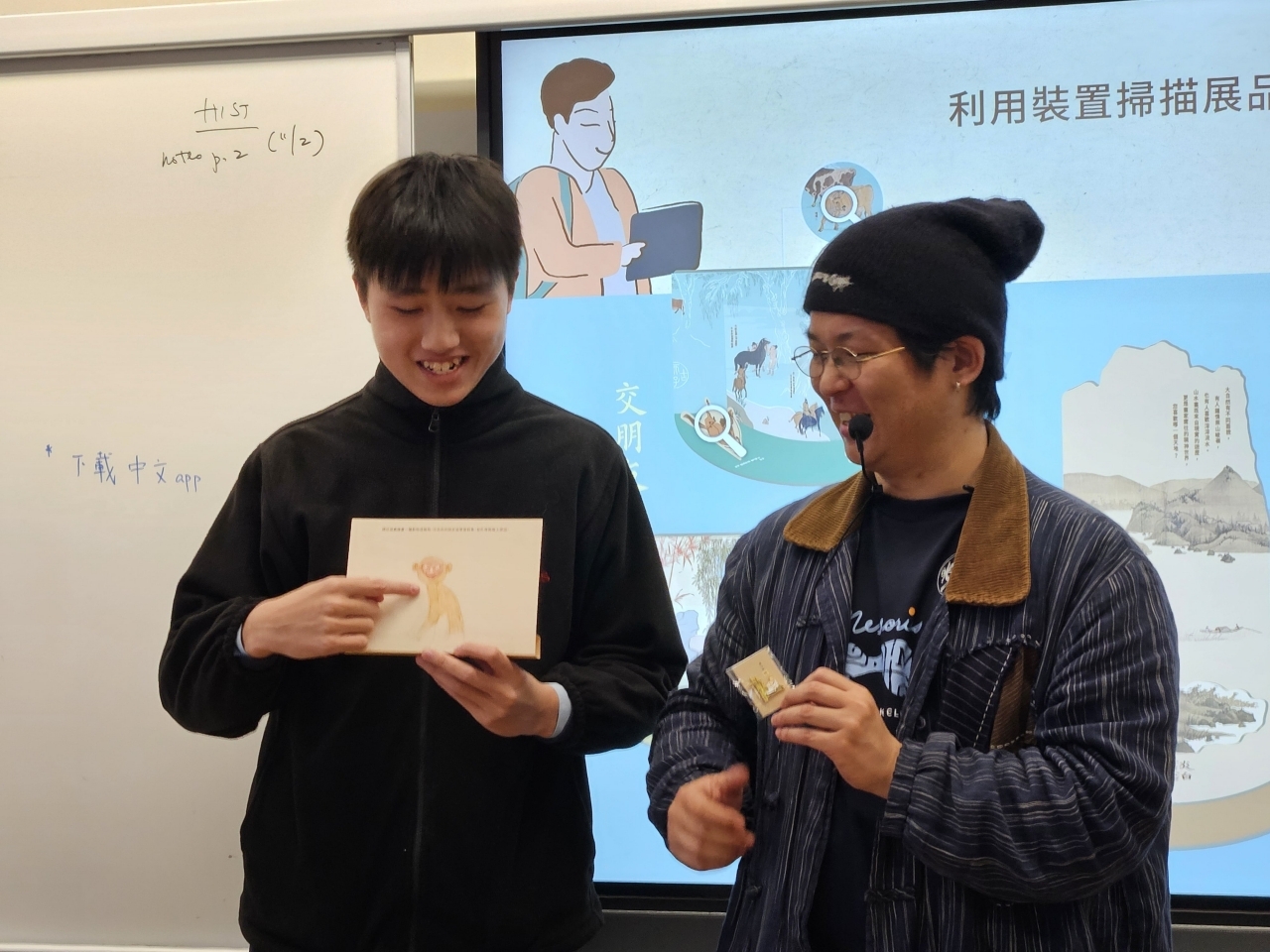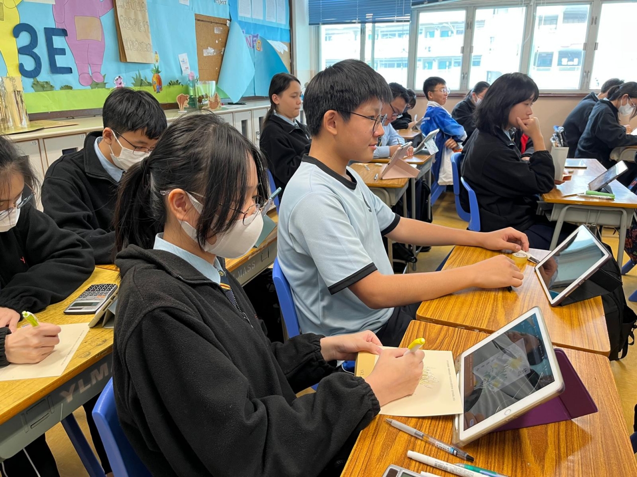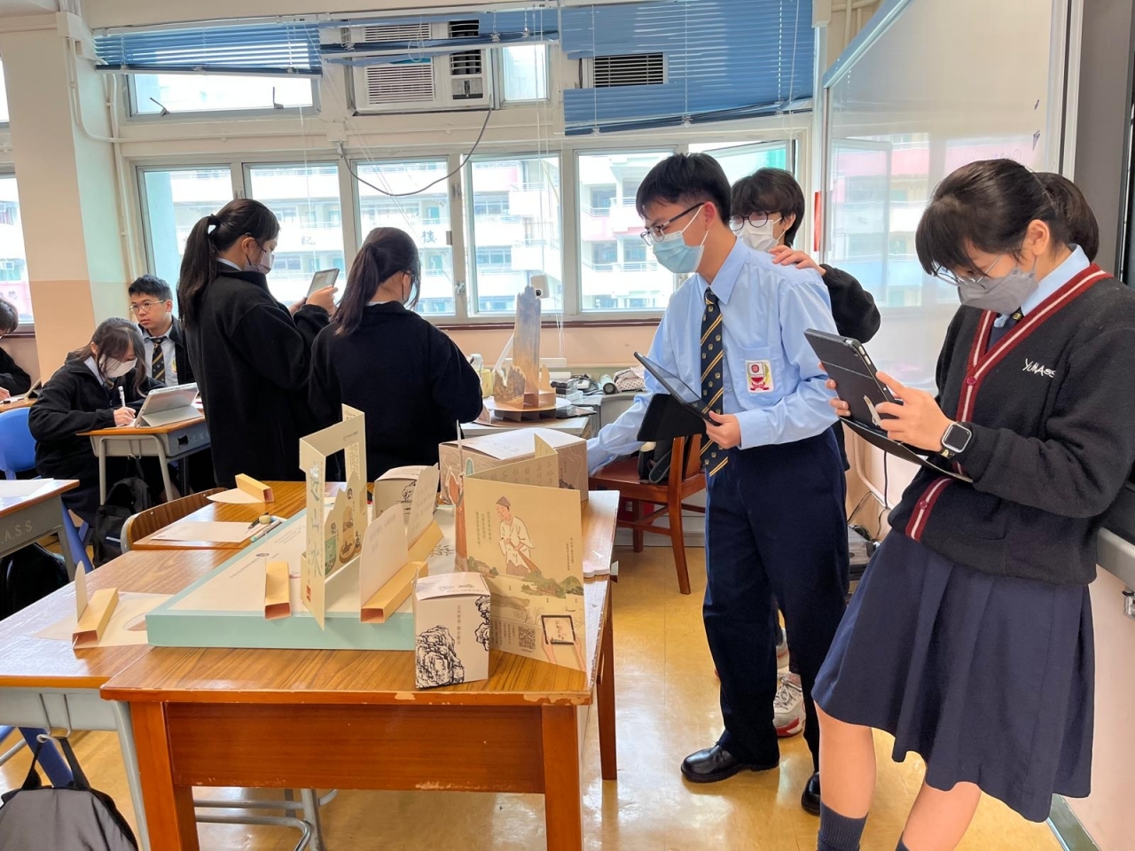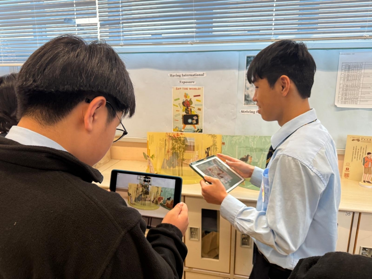 Our Secondary 3 students participated in the “Knock Knock Memory” thematic workshop supported by the Jockey Club. Through the interactive AR platform “Roaming Landscapes”, they stepped into the ideal world depicted in “Peach Blossom Spring”, exploring how architecture—ancient and modern—embodies human dreams and cultural values.During the workshop, students actively engaged with tablets, scanning pop-up books and thematic displays to immerse themselves in virtual landscapes and architectural scenes. Combining literary analysis with creative design, they envisioned and constructed their own “ideal architecture.”This experience not only deepened their understanding of classical Chinese texts, but also inspired reflection on the relationship between modern society and imagined utopias.