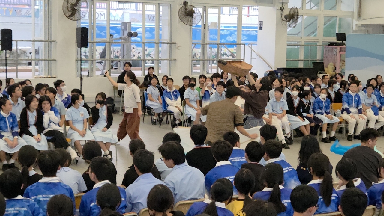 To promote Chinese culture and align with this year’s Chinese subject theme on Intangible Cultural Heritage, Chinese Department organized a special cultural experience for Secondary 2 and 3 students on November 18. Students attended Journey of the Fisherman, an interactive theater performance hosted by the Tai O Cultural Association.Through vivid puppetry, immersive sound effects, and lifelike props, students were transported into the traditional sampan lifestyle of Tai O fishermen. The performance not only showcased the unique cultural landscape and historical evolution of Tai O, but also conveyed the wisdom and resilience embedded in Chinese fishing traditions.The atmosphere was lively and engaging, with students enthusiastically interacting with giant orange fish and octopus puppets. Laughter and awe filled the hall as students experienced a multisensory journey that sparked reflection on cultural identity and heritage.This event deepened students’ understanding of local intangible cultural heritage and inspired a greater sense of appreciation and responsibility toward preserving Chinese traditions.