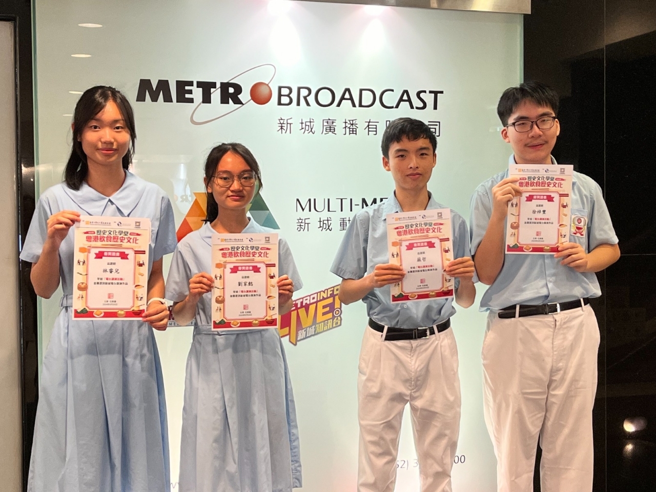 Our students 4M Tsui Tsz Fung, Lam Yui Yi, Su Chit, Liu Ka Yee have written a radio speech titled “Blanched Chicken,” introducing the culinary culture of Cantonese white-cut chicken. This piece was selected as an outstanding work in the secondary school category, and the students were invited to an interview at Metro Radio to record their radio speech.