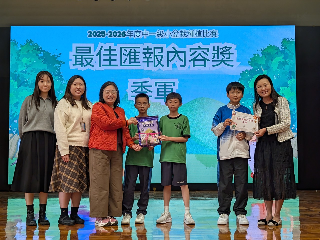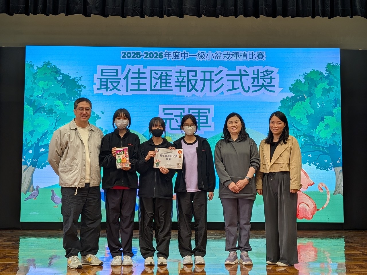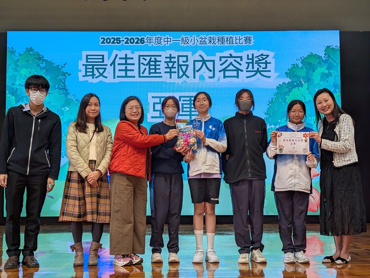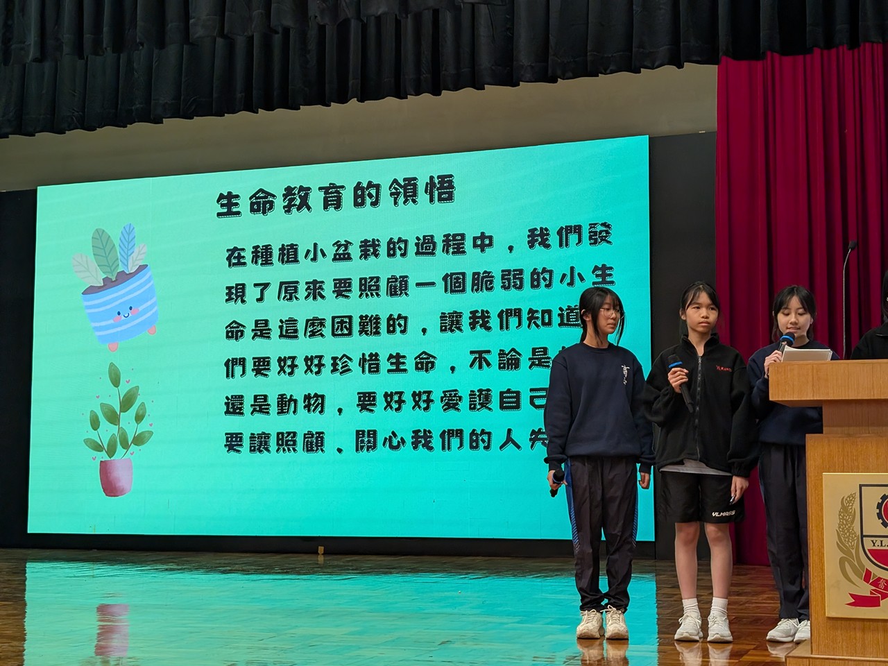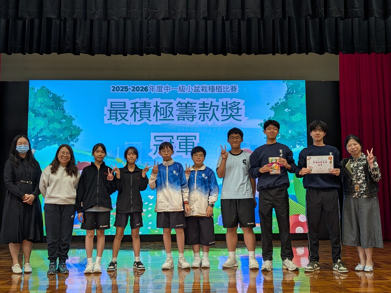 The Counselling Team, Parent-Teacher Association, Moral and Civic Education Team, and Citizenship, Economics and Society department jointly organised the S1 Charity Potted Plant Sale Presentation Competition on 13 March 2026. The activity aimed to enable S1 students to appreciate the meaning of life through cultivating mini potted plants, while learning basic concepts of business operation and management through a charity sale. On the day of the competition, students from each S1 class applied SWOT analysis to examine the strengths, weaknesses, opportunities and threats of their planting projects. They shared their planting experiences in various creative formats, demonstrating the self-discipline and perseverance of our school community.