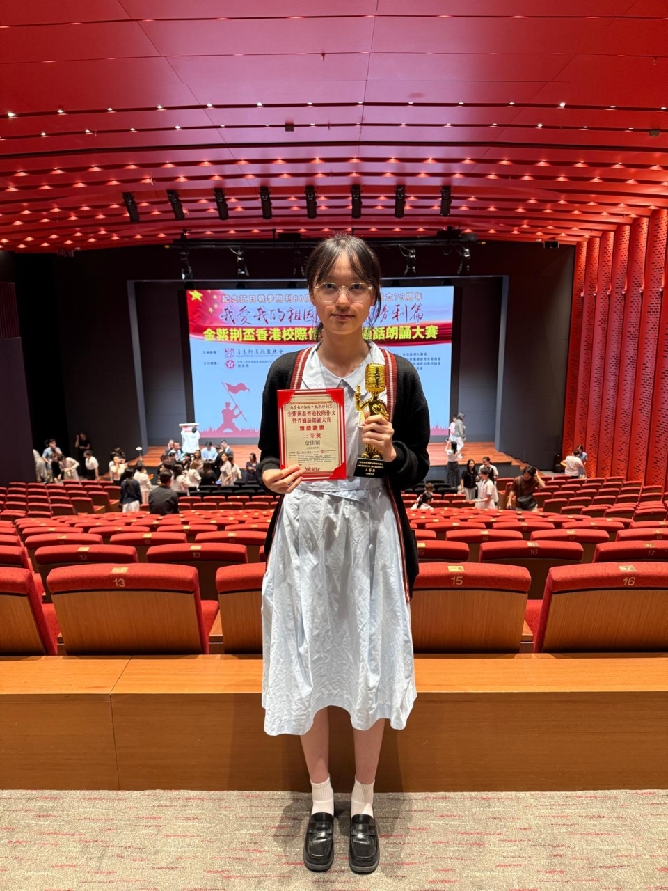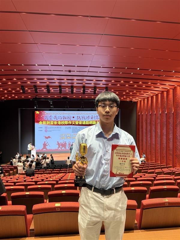 Our students Wei Tsz Yuk and Yu Jiaying won Third Prize in the Bauhinia Cup Inter-school Writing and Putonghua Recitation Competition, held on 5 October 2025 at the Hong Kong Palace Museum. Their heartfelt performances honored wartime heroes and reflected strong national spirit.
