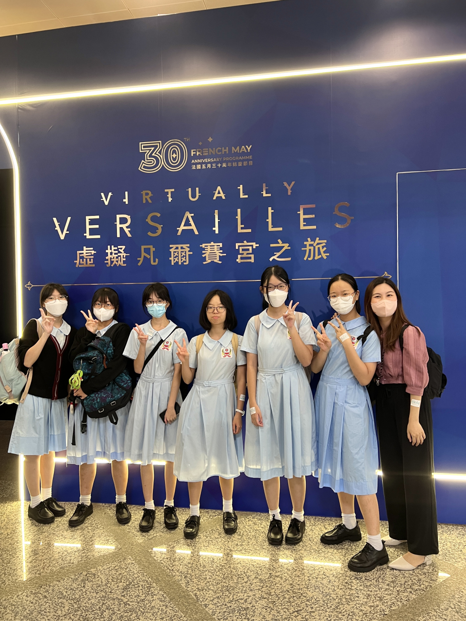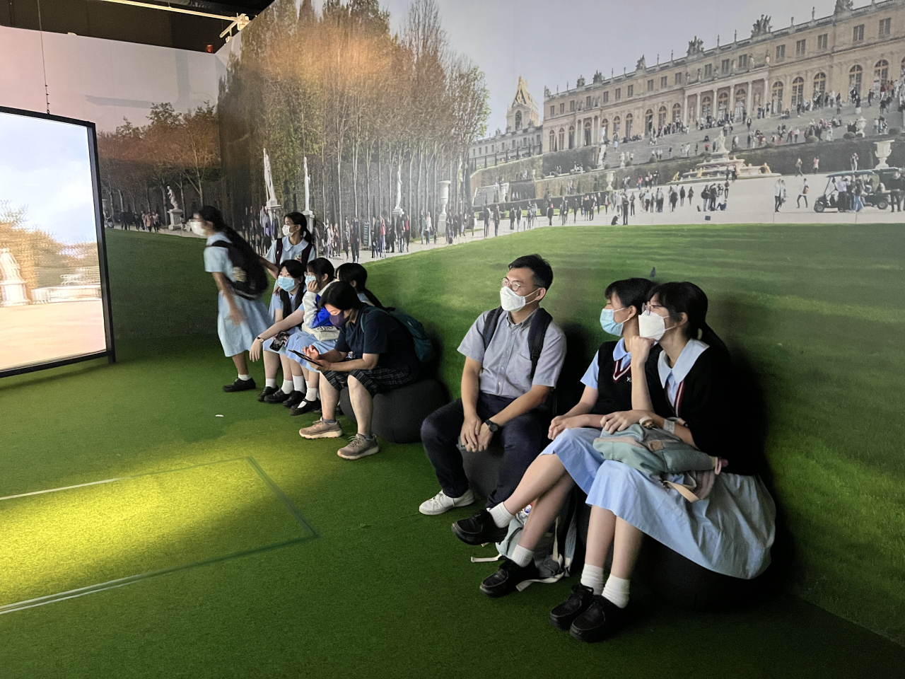 Student librarians, History and Visual Arts students visited the Virtually Versailles at the Hong Kong Heritage Museum on 5th July 2023. This is an immersive exhibition. With the help of innovative design, multi-media, and interactive installation, the distance between Hong Kong and France has been eliminated, and students almost feel like stepping into the magnificent history of the Palace. Apart from understanding its history from the 17th century to today, students appreciated and understood the beauty of the Palace from the perspective of architectural design.