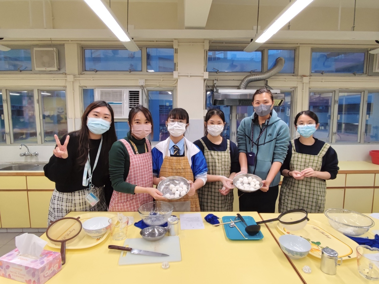 The Home Economics Club, Chinese History Club and Library Service Group have jointly organized a glutinous rice ball-making class. Students were given the opportunity to learn about Winter Solstice and the cultural significance of having glutinous rice balls as a symbol of reunion. They were also taught how to choose healthy fillings, having understood the importance of both physical well-being.